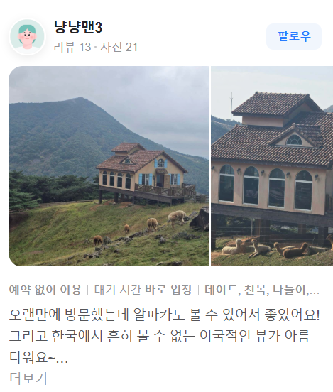 드넓은 자연 속 양과 교감할 수 있는 호남의 알프스