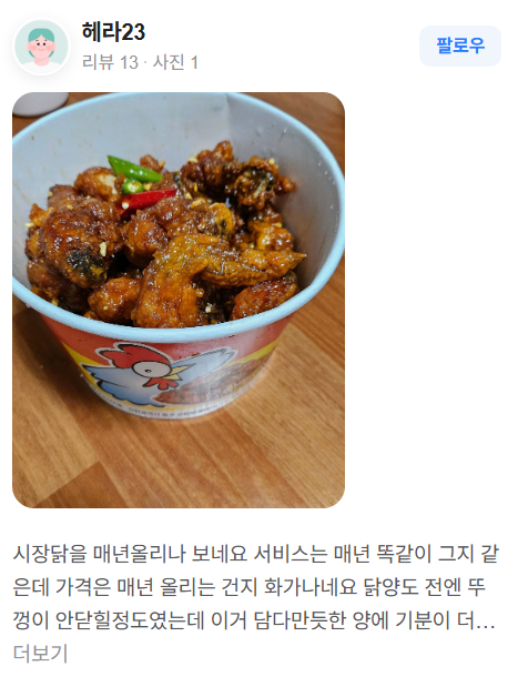 이 닭강정은 바삭한 튀김옷과 달콤한 소스가 어우러져 많은 사람들에게 사랑받고 있습니다.
