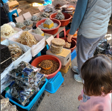 철 따라 계절 상품이 선보이고 있으며 어물전, 옹기전, 야채전, 가축전, 싸전 등이 옹기종기 모여 있어 장 구경하는 재미가 쏠쏠한 전통시장에서 즐거운 시간 되시길 추천드립니다.