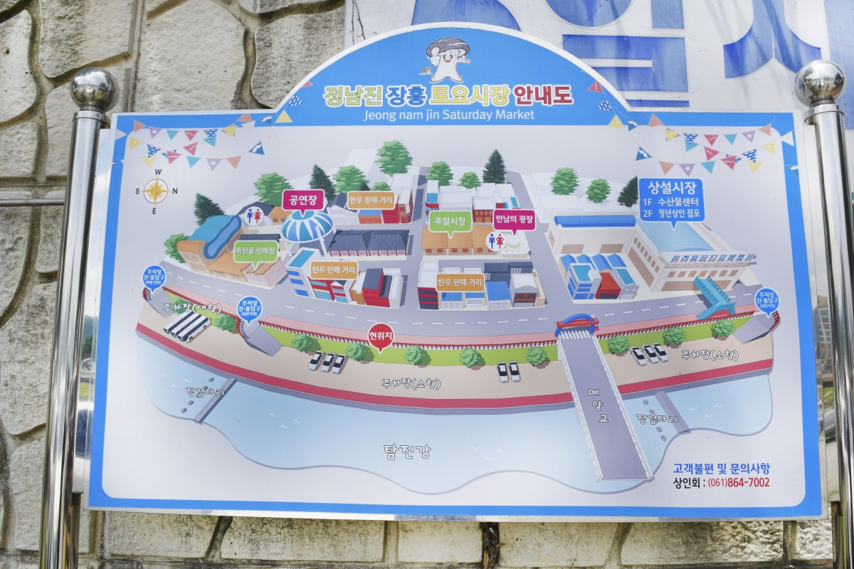 이 시장은 장흥의 대표적인 관광 명소 중 하나로, 지역 주민들이 직접 재배한 농산물과 수산물을 판매하는 장터입니다. 시장의 이름은 '정남진'이라는 지명에서 유래되었으며, 이는 '남쪽의 정점'이라는 의미를 가지고 있습니다. 이곳은 장흥의 아름다운 자연경관과 함께 지역 문화를 체험할 수 있는 좋은 장소입니다.