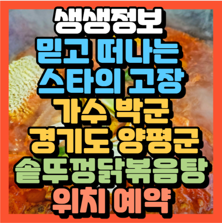 | 생생정보 믿고 떠나는 스타의 고장 가수 박군 경기도 양평군 수미마을 (+양평메기수염축제 일정 프로그램 입장료 ) (2) | 2025.07.08 |