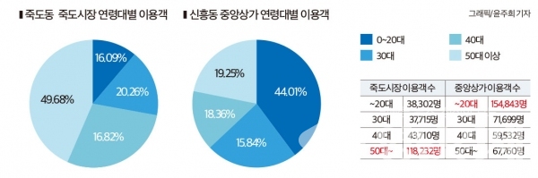그러나 50대와 60대 고객도 적지 않아, 다양한 연령층이 함께 어우러지는 시장입니다.