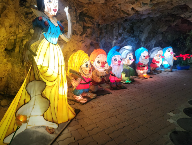 동굴 2층에는 공룡 조형물과 캐릭터 유등이 설치되어 있어 아이들에게 인기 만점 - 시즌별 특별 시설