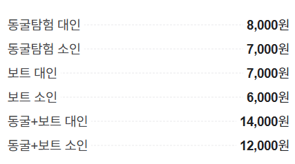 - 주말/공휴일: 09:15 ~ 17:30 (입장 마감은 16:30) 입장료 (동굴+보트 패키지 기준):
