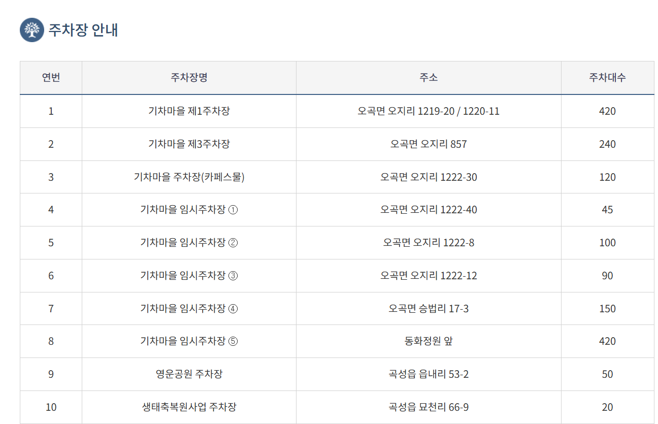 입장료 유료(곡성군민, 국가유공자, 장애인 무료), 일부 프로그램 유료