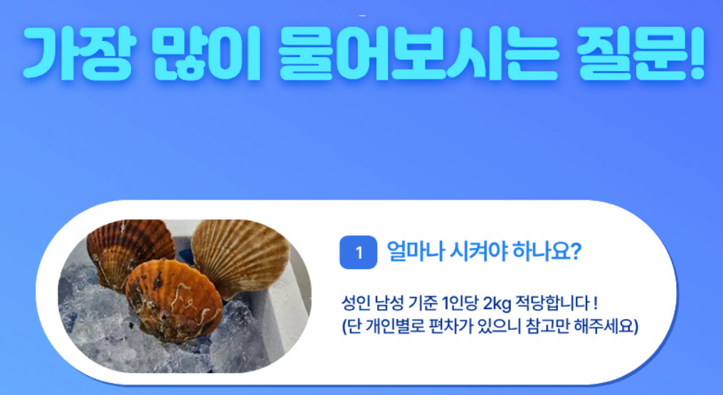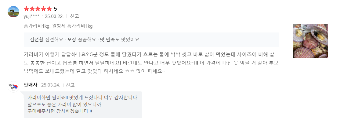 - “홍가리비 크기가 고르고 살이 꽉 차 있다”