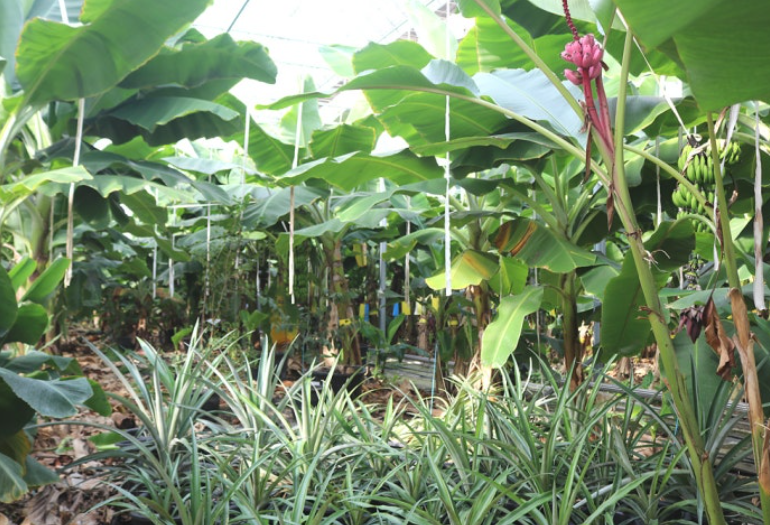 - 농장 투어: 아열대 분위기의 하우스에서 자라는 바나나 나무 관찰