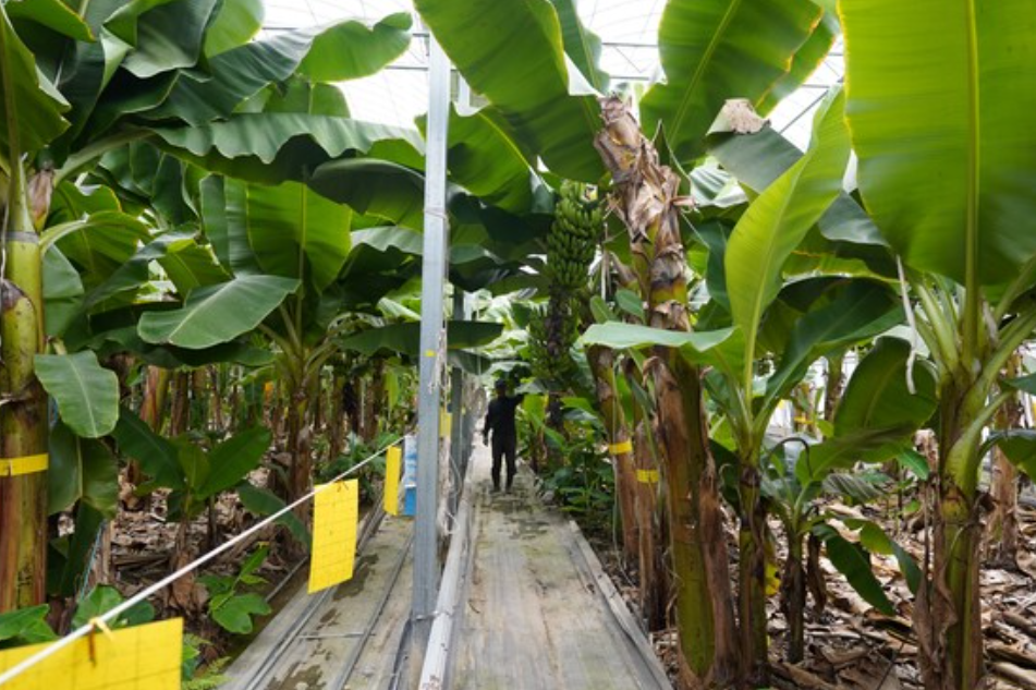 - 농장 투어: 아열대 분위기의 하우스에서 자라는 바나나 나무 관찰
