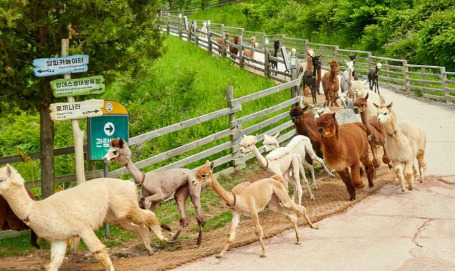 남미 안데스 산악지형을 재현한 '안데스생태방목장'에서 만나는 50여 마리의 귀여운 알파카들,