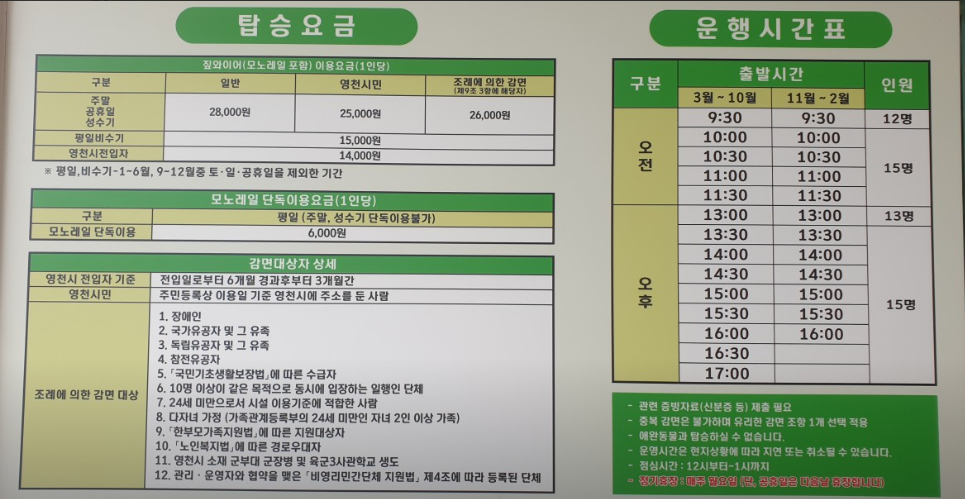 보현산댐 짚와이어 이용 요금