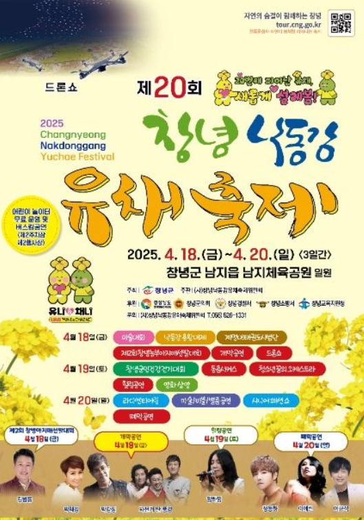 창녕 유채꽃 축제는 매년 봄, 경상남도 창녕군에서 열리는 대표적인 꽃 축제입니다.