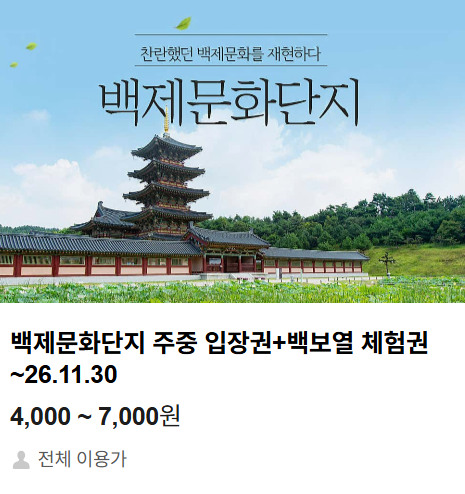 - 주소: 충남 부여군 규암면 백제문로 455 백제문화단지