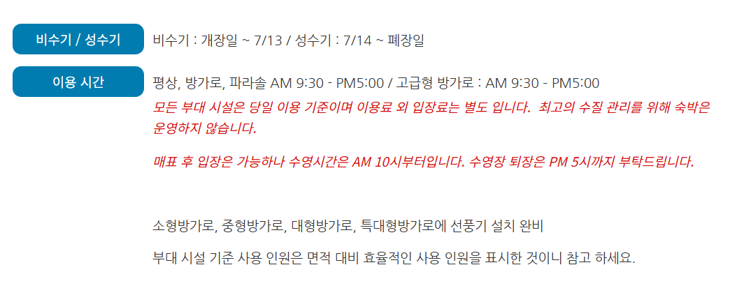 - 운영 기간: 여름 시즌 한정