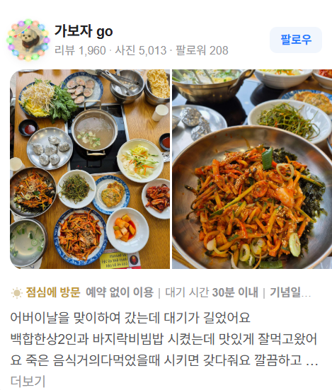 가족, 친구들과 함께 방문하여 맛있는 한식을 경험해 보시길 추천드립니다.