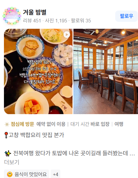 이곳은 전북 고창군에 위치한 한식당으로, 신선한 해산물과 정성 가득한 요리로 많은 사랑을 받고 있습니다.
