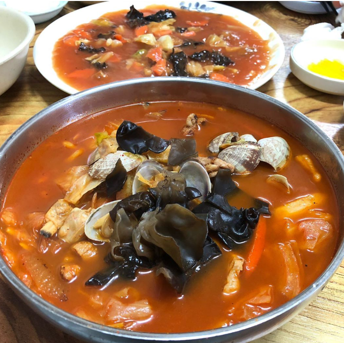 해물탕은 다양한 해산물과 채소가 풍부하게 들어가 있어, 국물의 깊은 맛을 느낄 수 있습니다.