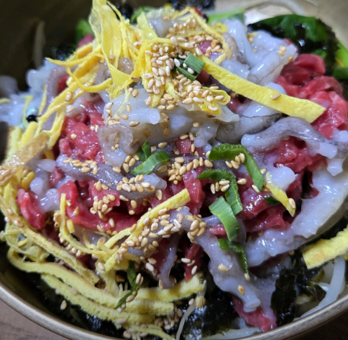 이곳의 육회는 부드럽고 쫄깃한 식감이 특징이며, 고소한 맛이 일품입니다.