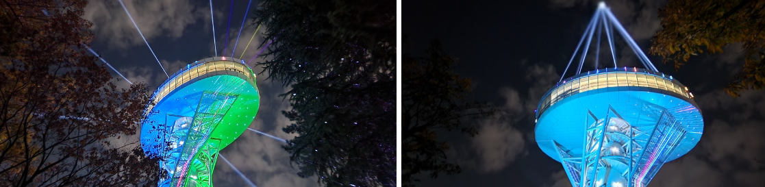 사직타워아래에서는 흩어졌다가 다시 하나로 모여 아름답게 빛나는 은하수로 변하는 장면이 하나의 멋집 포토존이 됩니다.