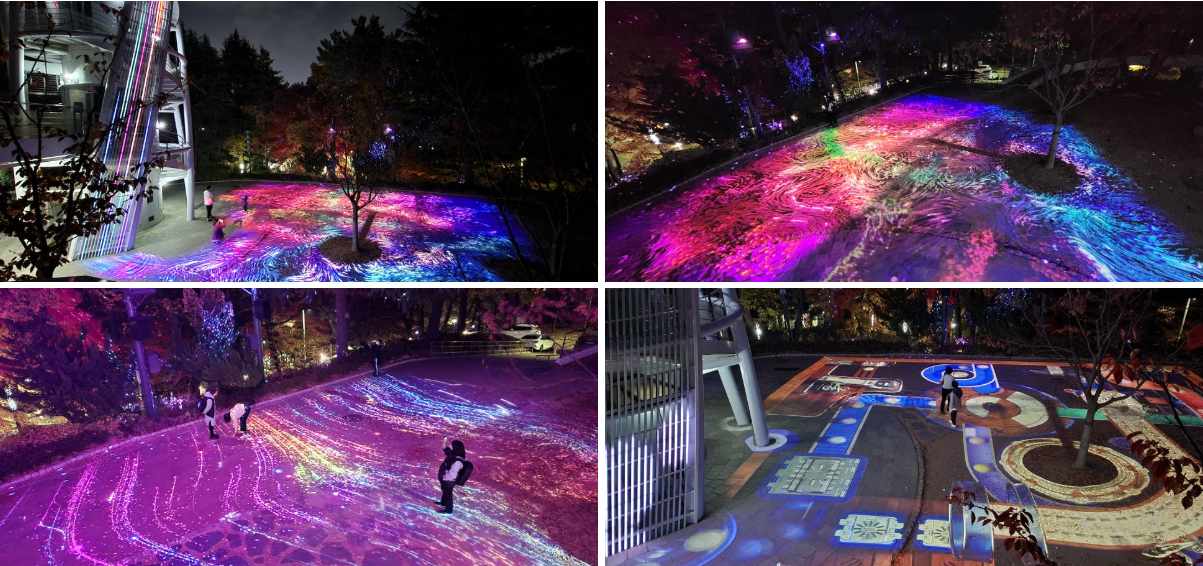 사직타워아래에서는 흩어졌다가 다시 하나로 모여 아름답게 빛나는 은하수로 변하는 장면이 하나의 멋집 포토존이 됩니다.