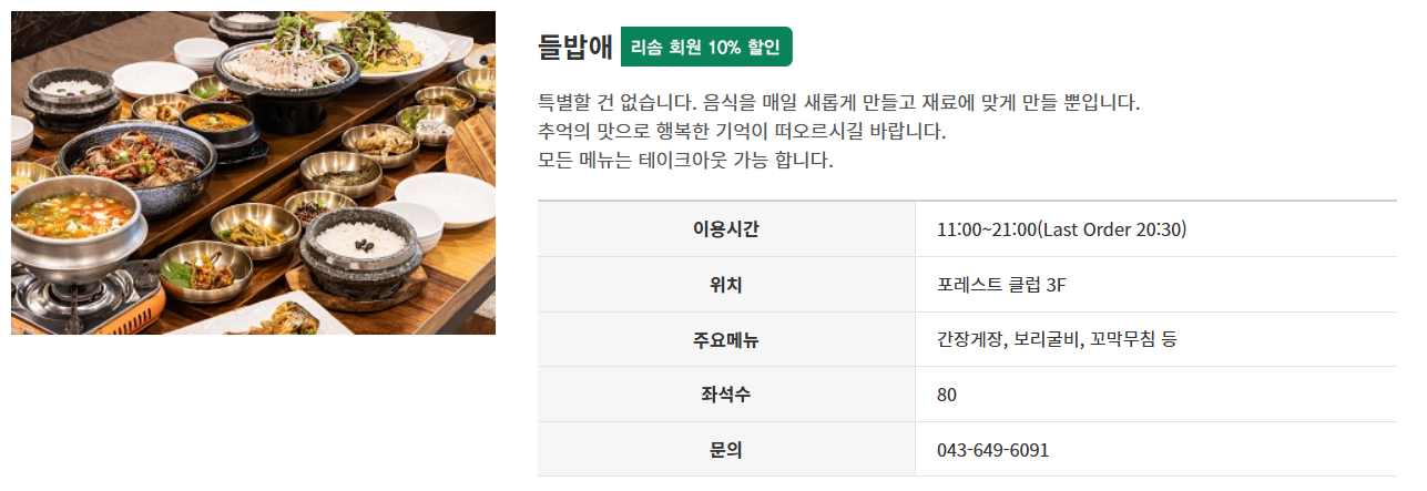 🍽️ 포레스트 리솜 대표 메뉴 & 다이닝