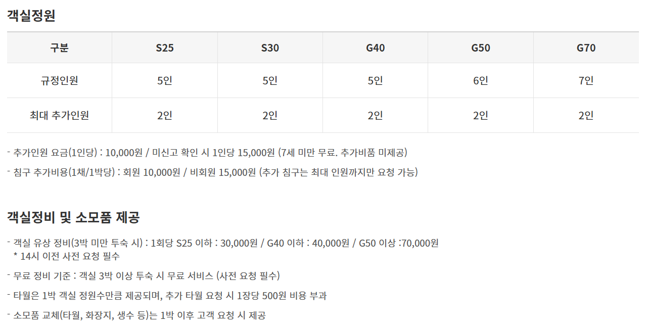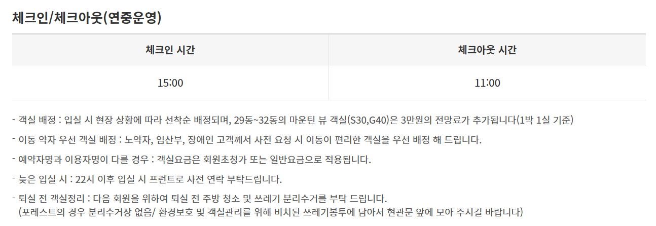- 객실 내 취사 가능 타입 다수