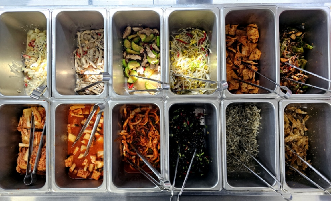 일반 한식 뷔페: 동태탕+오징어무침+꼬막무침+호박전+갓김치 등 15여 가지 반찬, 12,000원