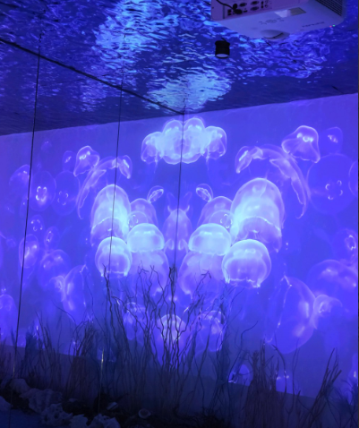- 미디어 아트 & 영상 연출: 천장·벽면에서 흐르는 해파리 영상을 연출하는 등 공간 감성 강화.