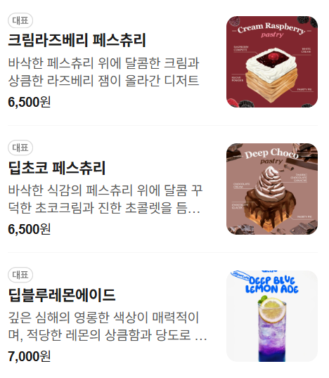 디저트 중심으로 메뉴 라인이 구성되어 있다는 후기가 많습니다.
