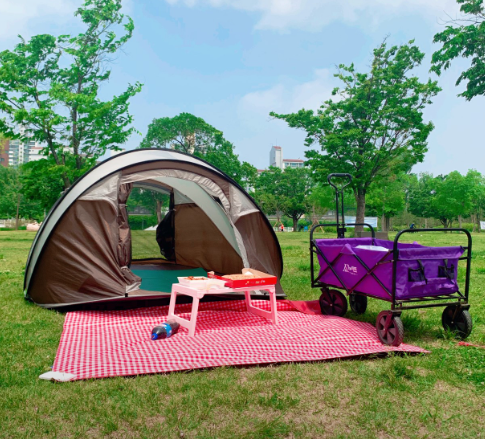 이곳은 서울의 아름다운 한강변에 위치한 텐트 대여 전문점으로, 피크닉과 캠핑을 즐기기에 최적의 장소입니다.