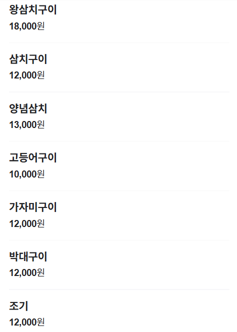 그 외에도 삼치구이, 모듬구이 등 다양한 메뉴가 준비되어 있어 선택의 폭이 넓습니다.
