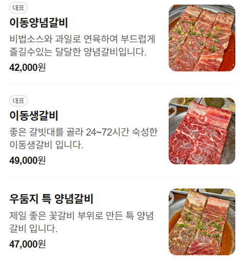 산정호수에서 차량으로 이동해 방문하는 식당으로, 포천 이동갈비를 찾는 분들에게 인기가 많습니다.