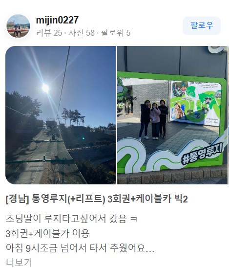 경남 통영에서 즐기는 스카이 라인 루지의 위치와 이용권에 대해 안내 해 드립니다.