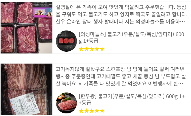 - 선물용으로 구매 시 등급(1+ 등급 이상 등) 및 포장기한·보관방법 확인