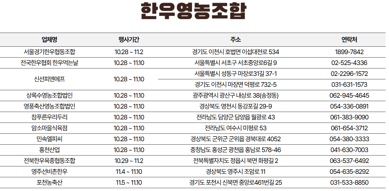 이번 행사에서는 고급 부위는 물론이고, 보다 합리적인 가격대의 한우도 준비되어 있어 가족 외식, 선물용 구매, 연말 준비 등 다양한 목적으로 주목받고 있습니다.