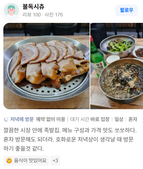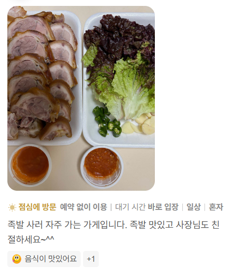 - “족발이 부드럽고 잡내 없음”