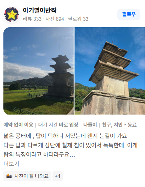 • “두 개의 석탑이 나란히 서 있는 모습이 인상적입니다.”