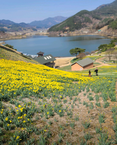 1. 마을 전체가 노란 꽃으로 물드는 풍경