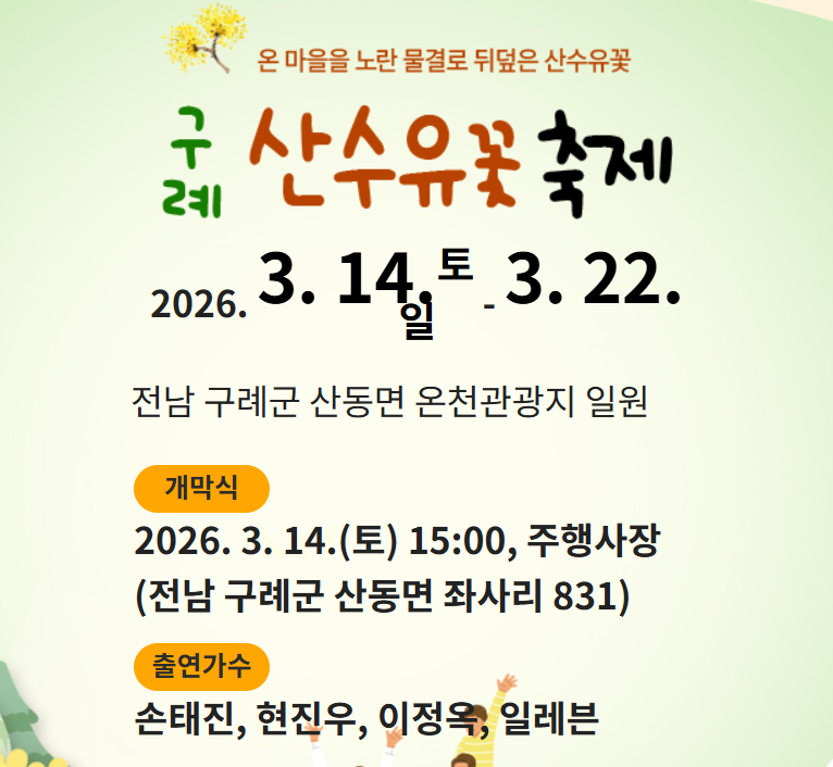 봄이 되면 가장 먼저 떠오르는 여행지, 바로 구례 산수유꽃 축제입니다.