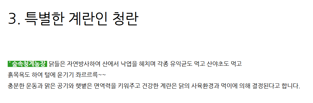 숲속청계농장의 청계란은 단순한 식재료를 넘어, 강원도 고성의 청정 자연환경과 농장의 정성이 담긴 건강한 먹거리입니다.