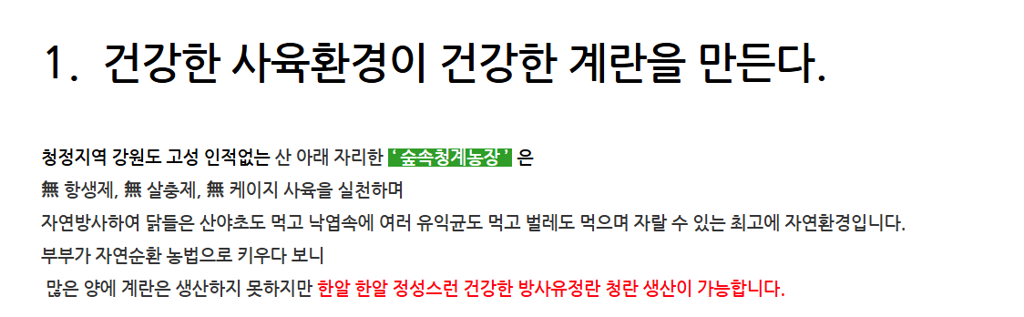 숲속청계농장 – 강원도 고성 청계란 · 초란 자연 방목 농장