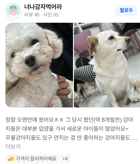 ✔ “강아지가 너무 좋아해서 자주 방문”