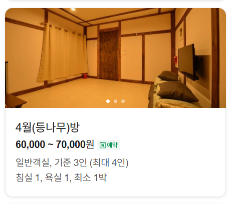 ※인원추가 예약신청 예시: [1월 (소나무) 방: 기준 2인/ 최대 4인 가능]