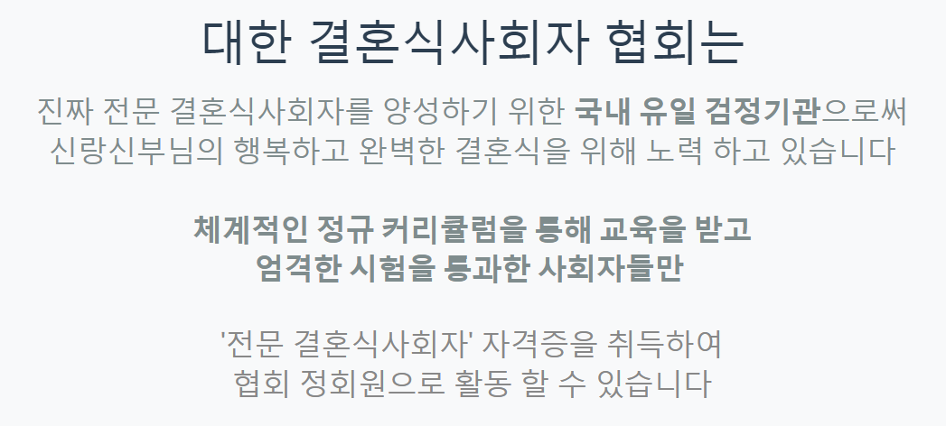 대한 결혼식 사회자 협회는 일반 프리랜서 사회자와 차별화된 특징이 있습니다.