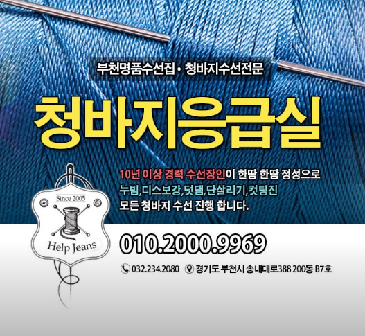 청바지응급실(옷수선은 경기 부천시 원미구 송내대로 388에 위치한 데님 수선 전문점입니다.