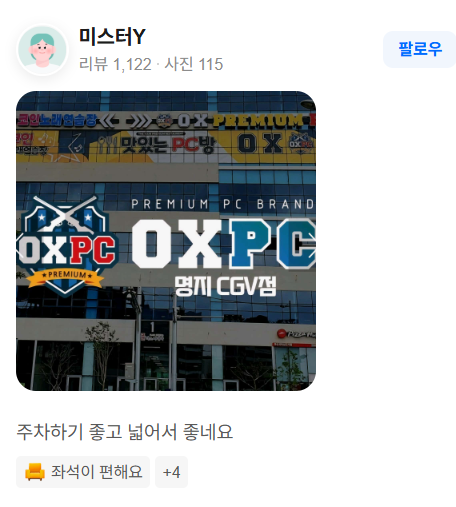 코인노래방과 PC를 함께 즐길 수 있는 OX PC 명지 CGV점