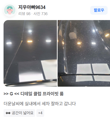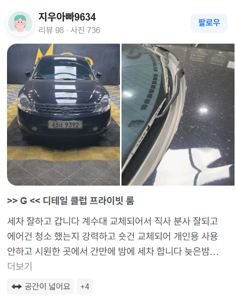 차종별, 도장 상태별로 달라지는 맞춤형 세차는 물론! 고압수 분사 각도, 샴푸 희석 비율, 타월의 재질까지 치밀하게 계산하는 그의 손길은 그야말로 장인의 수준이라고합니다.