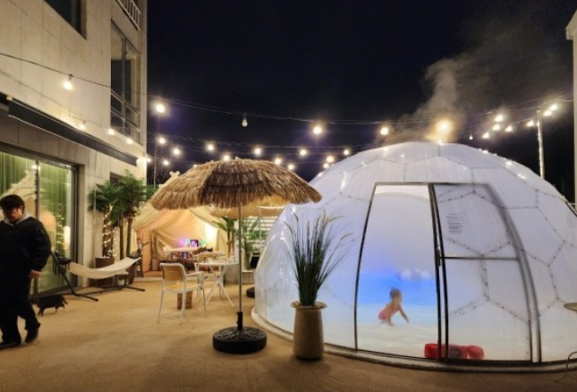 📌 이글루 같은 돔수영장! 날씨가 추워져도 물놀이 가능 OK 눈, 비, 바람을 막아주어 추워지는 날에도 따뜻하게 물놀이 하기 너무 좋답니다.