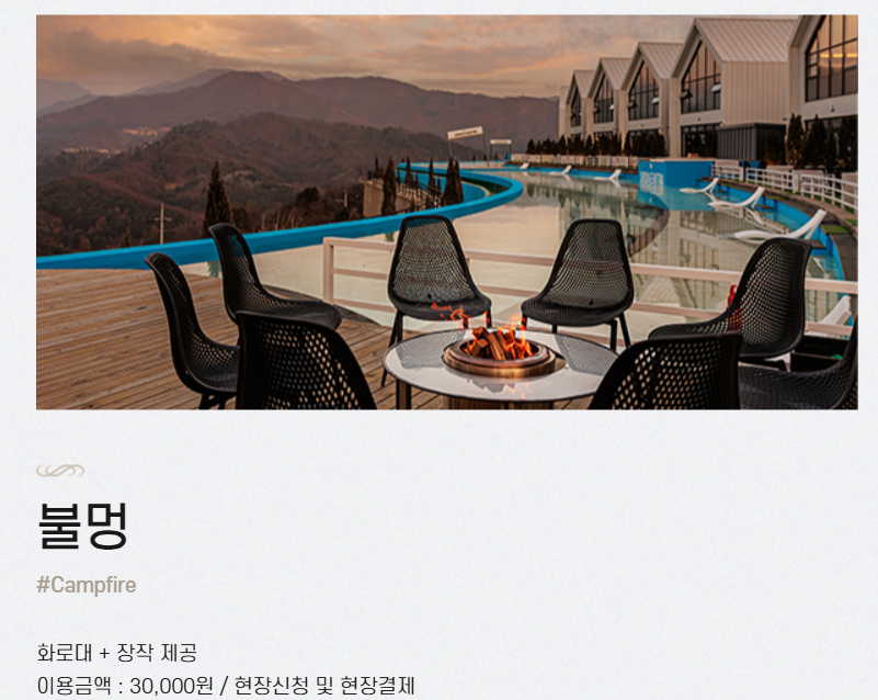 * 불멍 이용 시 인조잔디에 손상 및 화재발생할 경우, 배상 청구되는 점 유의해주시길 바랍니다.