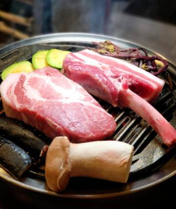 대표 메뉴 중 하나는 두툼하게 썰어 숯불에 구워내는 삼겹살입니다.