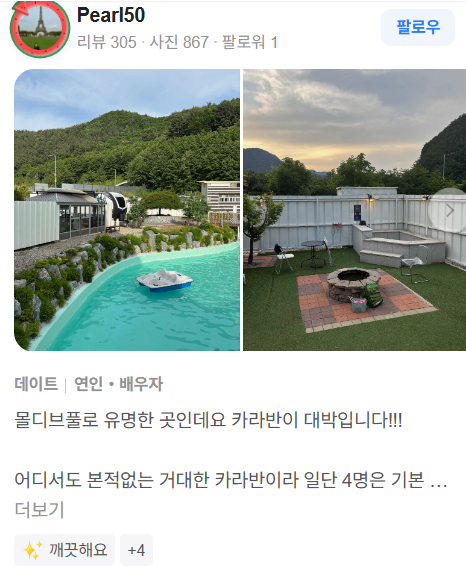 에메랄드빛 초대형 풀에서 즐기는 한국의 몰디브, 드위트리 풀빌라펜션 & 카라반가든입니다.